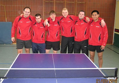 Beim Auswärtsspiel in Ettlingen reichte der 1. Mannschaft nach dem Unentschieden des Verfolgers TG Eggenstein in Dietlingen bereits ein Unentschieden zum vorzeitigen Gewinn der Meisterschaft. Diese Chance ließ sich das TSV-Sextett natürlich nicht nehmen u. ging bei den überforderten Gastgebern von Beginn an hochkonzentriert zu Werke, was sich in der 2:1 Doppelführung durch Martus/Philipp und Müller/Feuchter bei der knappen Niederlage von Schlindwein/Zimmerer niederschlug. In den Spitzeneinzeln erhöhten Philipp gegen Lauinger und Martus gegen Keim auf 4:1. Die Mitte mit Schlindwein u. Zimmerer sorgten dann mit klaren 3-Satz-Siegen gegen Retz u. Gerwig für die vor entscheidende 6:1 Führung. Nach dem 7:1 durch Andi Müller war die Niederlage von Stephan Feuchter zum 7:2 lediglich Ergebniskorrektur. Den 8. Punkt, der zur Meisterschaft gereicht hätte, markierte Alexander Philipp gegen Keim. Den Schlusspunkt unter die einseitige Partie setzte Dominik Martus mit seinem Sieg gegen Lauinger zum 9:2 Endstand.