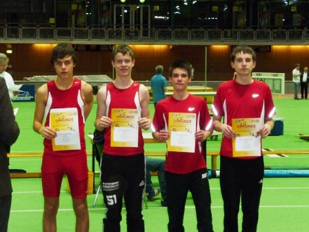 Badische Jugendmeisterschaften U20/U18Erfolgreiche Badische Jugend-Hallenmeisterschaften Mit Lucas Baumgärtner, Jonas Klemt, Noah Hodolic und Marius Riffel starteten am 21. Januar vier Athleten im Trikot der LG Altenbürg Karlsdorf-Neuthard bei den Badischen Jugend-Hallenmeisterschaften. Gemeinsam gingen Sie in der Karlsruher Europahalle in der 4x200m-Staffel an den Start, mit dem Ziel eine Top10 Platzierung zu erreichen. Zusätzlich konkurrierten die Jugendlichen auch in den Einzeldisziplinen 200m und 400m. Marius Riffel machte dabei die beste Figur und lief über die ungewohnte 400m Distanz in 58,53sec auf den fünften Rang. Dicht hinter ihm lag dabei Lucas Baumgärtner, der in 59,46sec guter Siebter wurde. Über 200m wurden Noah Hodolic und Jonas Klemt im großen Feld 17. und 18. In der Staffel lieferte die Truppe dann mit einer Zeit von 1:47,10min eine geschlossene Leistung ab. Diese wurde im abschliessenden Klassement mit dem guten fünften Rang belohnt. So musste niemand ohne Urkunde die Halle verlassen. Mit zwei mal Platz Fünf sowie Rang Sieben lieferte das Quartett insgesamt eine starke Leistung ab. Die Teilnahme an den Badischen Hallenmeisterschaften darf daher als großer Erfolg gewertet werden.