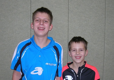 Problemlos meisterten beide die Gruppenspiele der Vorrunde, wo sie keinen Satz abgaben u. locker in die K.O.-Runde einzogen. Im Halbfinale traf Gregor Breitschopf auf Maximilian Gerhold vom TTC Weinheim. Gegen den unbequemen Materialspieler setzte er sich letztlich dank seiner taktisch überlegenen Spielweise verdient mit 3:1 Sätzen durch. Ähnlich war es bei Richard Breitschopf, der auf Florian Blum vom ASV Grünwettersbach traf. Nach knapp verlorenem erstem Satz stellte er sich immer besser auf seinen Gegenspieler ein u. schoss ihn in den nächsten drei Sätzen dank seines variablen Angriffspiels vom Tisch. In einem hochklassigen Endspiel setzte sich dann der noch 14-jährige Gregor gegen seinen 13-jährigen Bruder Richard Breitschopf in 5 Sätzen durch.