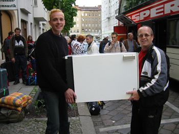 Alte Turnfesthasen wissen: Wer in der Unterkunft (=Schulzimmer) kühle Getränke will, muß selber einen Kühlschrank mitbringen. |
