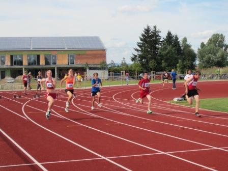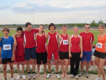 DJMMAm Freitag, dem 08. Juni standen die landesoffenen DJMM-Vorkämpfe in Bad Schönborn an. Im neuen zwischen Mingolsheim und Langenbrücken gelegenen Stadion zeigten die neun Athleten der LG gute Leistungen. Bei einem DJMM-Durchgang (Deutsche Jugend-Mannschafts- Meisterschaften) kann in verschiedenen Gruppen gestartet werden, welche die Anzahl der Diszplinen festlegen. Die männliche Jugend B startete mit sechs Startern in der Gruppe mit den Disziplinen 100m, Weitsprung, 1000m, Kugelstoßen sowie 4x100m. Dabei startet jeder Athlet in zwei Disziplinen und sammelt so Punkte für die Mannschaft. Die weibliche Jugend B konnte aufgrund terminlicher Probleme keine komplette Mannschaft stellen, sodass lediglich Samantha Frank und Kristina Rechner mit je zwei Einzelstarts am Wettkampf teilnahmen. Die stärkste Einzelleistung erzielte Lucas Baumgärtner, der in 3:03,2min über 1000m ein couragiertes Rennen ablieferte und somit 550 Punkte sicherstellte. Das 100m-Rennen dominierte Marius Riffel in 13,1sec vor Samantha Frank, die in 13,9sec die übrige männliche Konkurrenz hinter sich lies. Den Sieg im Kugelstoßen sowie im Weitsprung sicherte sich Jonas Hofheinz mit 4,56m bzw. 9,22m. Samantha blieb mit 8,23m unter der angepeilten Qualifikation für die Badischen Meisterschaften. Kristina Rechner, welche erst seit wenigen Wochen zu uns gestoßen ist, lieferte mit 15,9sec und 3,50 einen akzeptablen ersten Wettkampf ab. Ein starkes Rennen gelang der 4x100m-Staffel der Jungs. Jonas Hofheinz, Marius Riffel, Lucas Baumgärtner und Noah Hodolic liefen obwohl ohne Konkurrenz ein starkes Rennen und bestätigten ihre Saisonbestleistung von 49,9sec. Alles in Allem war es zwar aufgrund der fehlenden Gegener kein leichter Wettkampf, aber dennoch wurden einige gute Leistungen gezeigt. Sicher eine erfolgreiche Abwechslung zum Freitagstraining. Vielen Dank an Florian Gedemer, der seine Trainingseinheit nach Mingolsheim verlegte und so die Athleten mitbetreute.