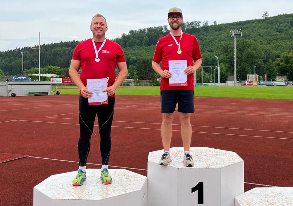 Drei Titel bei Baden-Württembergischen Meisterschaften der MastersDrei Starts, drei Siege. Die Ausbeute der LG-Teilnehmer bei den Baden-Württembergischen Meisterschaften der Masters in Heidenheim war nicht zu überbieten. Am Samstag sicherte sich Simon Klein (M35) gleich zwei Meistertitel. Sowohl im Diskuswurf, als auch im Kugelsoßen konnte er den Landesmeistertitel erringen. Damit verteidigte er seinen Titel aus der Halle und beschließt die überaus erfolgreiche Saison als insgesamt vierfacher Baden-Württembergischer Meister sowie Deutscher Vizemeister. Angespornt von den Leistungen des Vortages reiste Frank Lein (M40) ins beschauliche Ostwürttemberg. Er stand Simon in nichts nach uns sicherte sich in seiner Disziplin Speerwurf ebenfalls die Goldmedaille. Mit seiner Siegesweite von 39,48m stellte er einen neuen LG-Rekord auf und kratze stark an der DM-Norm (40,00m). Diese soll nun in den verbleibenden regionalen Wettkämpfen fallen.