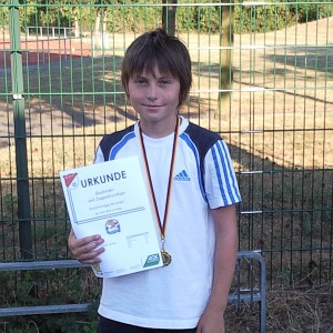Mit einem fulminanten Ballweitwurf über 41,50 m deklassierte Timo gleich zu Beginn die Konkurrenz. Auch beim 50 m-Lauf war er vorne mit dabei und mit sauber vorgetragenen Pflichtübungen am Boden, Barren und Sprung sicherte er sich den obersten Podestplatz.