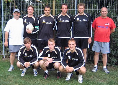 Am zweiten Tag der Aufstiegsspiele trafen wir auf den ebenfalls verlußtpunktfreien TB Oppau. Jedem war klar, der Sieger dieses Spiels ist in die zweite Bundesliga ausgestiegen. Leider erwischten wir einen miserablen Start. Sofort lagen wir mehrere Bälle zurück und von der souveränen Spielweise vom Samstag war überhaupt nichts mehr zu sehen. So ging der 1. Satz deutlich mit 11:4 an den TB Oppau. In den beiden darauf folgenden Sätzen konnten wir zwar noch mithalten, doch eine Gegenwehr der Mannschaft war nicht ersichtlich. So gingen beiden Sätze mit 11:9 und 11:8 an Oppau. Jetzt musste im letzten Spiel gegen den hessischen Vertreter aus Rendel gepunktet werden. Da unseren Hauptangreifer verletzungsbedingt zum Zuschauen verurteilt war, mussten es Alexander Rogojew und Johannes Schmitt im Angriff richten. Auch in der Abwehr kam mit Markus Schmittinger ein erfahrener Spieler zum Einsatz. Nach 3 hart umkämpften Sätzen (11:9, 11:6, 11:9) flogen anschließend die Sektkorken.