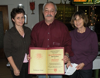 Im Verlauf des Abends holte Heike Hörner die Ehrung für zwei verdiente Mitglieder nach, die beim Ehrungsempfang verhindert waren: Christina Grüneberg und Hans Eberhard Weschenfelder.