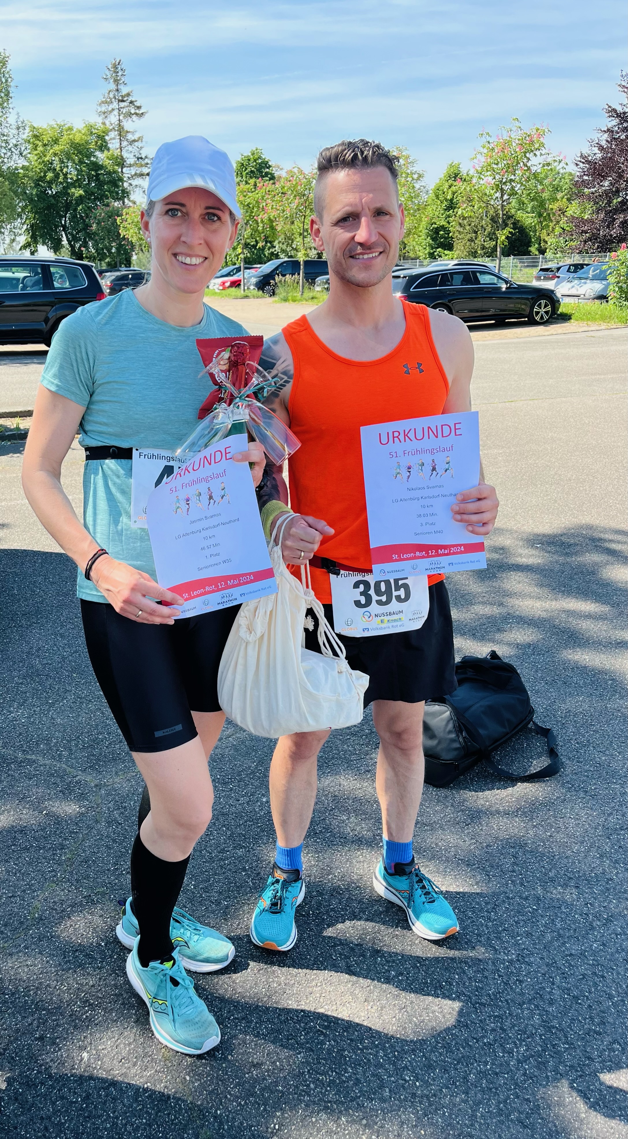 Jasmin und Niko Svarnas erfolgreich bei zwei VolksläufenBei bestem Wetter fanden Dank des Feiertages gleich zwei Volksläufe letze Woche statt. An Christi Himmelfahrt fand im Zuge des Sportfestes des TV Wössingen zum 32. mal der traditionelle Himmelfahrtslauf statt an dem für die ganze Familie etwas geboten wurde. Für die LG Altenbürg erreichte Jasmin Svarnas den 4. Gesamtplatz aller Frauen und wurde 1. Siegerin Ihrer Altersklasse W35.