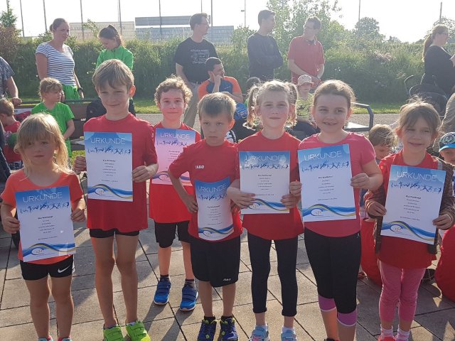 Erfolgreicher Auftakt der Kinderleichtathletik in Bad Schönborn Auch die jüngsten Sportlerinnen und Sportler haben inzwischen ins Wettkampfgeschehen eingegriffen. Am 11.05. fand der erste sog. Trainingsbesuch bei der SG Bad Schönborn statt. Bei diesen Veranstaltungen geht es darum, die erlenten Disziplinen der Kinderleichathletik anzuwenden und sich mit anderen Gruppen zu messen. Dabei treten Jungs und Mädchen gemeinsam in Teams an. Bei der ersten Kinderleichtathletikveranstaltung des Jahres mussten beispielsweise eine Hindernisstaffel sowie ein Hochweitsprung absolviert werden. Die drei LG-Athleten der Altersklasse U10 wurden in einer gemischten Mannschaft vierter Sieger. Bei den Kleinsten der U8 konnte die LG eine eigene siebenköpfige Mannschaft stellen. Bei sieben Teilnehmenden Mannschaften konnte der gute dritte Platz erreicht werden. Jetzt heißt es weiter üben, bevor am 16.06. der nächste Vergleich im heimischen Altenbürgstadion ansteht.