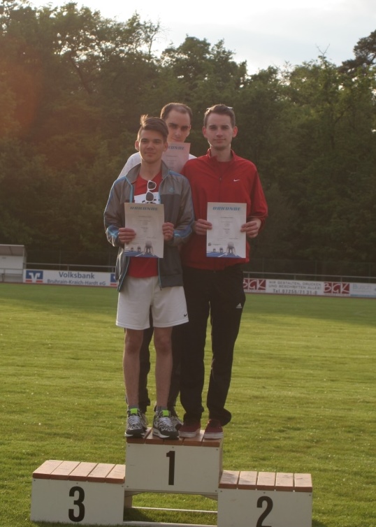 14 neue Kreismeister - Ein neuer LG-Rekord Als eine der erfolgreichsten Veranstaltungen der LG Altenbürg Karlsdorf-Neuthard werden die Kreis-Staffelmeisterschaften in die Geschichte eingehen, welche am 14. Mai im Waldseestadion Forst stattfanden. In fünf Staffeln konnten insgesamt 14 neue Kreismeister geehrt werden. In der Konkurrenz der Olympischen Distanz gab es ein vereinsinternes Duell zwischen "Alt" und "Jung", wobei die U20-Staffel um Jonas Hofheinz, Jonas Klemt, Noah Hodolic und Felix Marx die Männerstaffel hinter sich lassen konnte. Bis zum letzten Wechsel hatte die Männerstaffel noch in Führung gelegen, Felix eroberte aber mit einem starken Rennen gegen Christian Seifert die Führung. Die Verhältnisse konnten in der abschließenden 3x1000m-Staffel allerdings wieder gerade gerückt werden. Die U20-Jungs sicherten sich zwar ihren zweiten Titel und ließen das Team der TSG Bruchsal hinter sich, mussten diesmal allerdings die Männer der LG Altenbürg um über eine Minute ziehen lassen. In einem starken Rennen sicherten sich Benedikt Klein (3:07min), Stefan Hoffmann (3:14min) und Benjamin Nelson (2:59min) den Kreismeistertitel und verbesserten damit den bestehenden LG-Rekord um über zwei Sekunden auf nun 9:20,6min. Ein kleiner Wermutstropfen war, dass unter den 14 Kreismeistern keine einzige Läuferin vertreten war. Denn der letzte Sieg ging ebenfalls an eine männliche Staffel: die 3x1000m-Staffel der männlichen U16 mit Benjamin Jäger, Bernd Behrends und Yannik Brettschneider. Im Anschluss an den Wettkampf konnte der Sieg bei einer kleinen Grill-Siegesfeier genossen werden. Allen Teilnehmern herzlichen Glückwunsch zu den erbrachten Leistungen und vor allem den erfolgreichen Staffeln zu ihren zahlreichen Kreismeistertiteln!