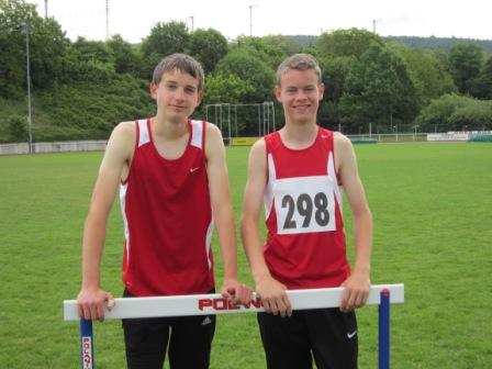 Regio - BlockmeisterschaftenBei den Regionalmeisterschaften neun umliegender Leichtathletikkreise in Mosbach/Neckarelz gingen mit Noah Hodolic und Marius Riffel zwei Teilnehmer der LG an den Start. Ein ’Block’ besteht immer aus fünf Disziplinen die erfolgreich absolviert werden müssen. Im Block ’Lauf’, in welchem Noah und Marius an den Start gingen, waren dies die Disziplinen 80m Hürden, Ballwurf, Weitsprung, 100m und 2000m. Über die ungewohnte Hürdendistanz schlugen sich beide wacker. Marius konnte in 13,25sek sogar den dritten Platz des Feldes erlaufen. Im Ballwurf schleuderte er das 200g schwere Wurfgerät auf 57,5m und erzielte damit sogar einen neuen LG-Rekord. Noch besser lief es für Marius beim anschließenden Weitsprung. Dort konnte er seine Bestleistung über einen halben Meter auf gesprungene 5,05m steigern. Leider konnte Noah den tollen Leistungen seines Kollegen auch aufgrund einer wieder aufgebrochenen Verletzung nicht ganz folgen und sortierte sich mit 47m im Ballwurf und 4,60m im Feld ein. Die 100m boten ein spannendes Rennen. Marius wurde in 12,86sek Zweiter, Noah in 12,96sek Vierter. Die Entscheidung um die vorderen Plätze musste letztlich der abschließende 2000m-Lauf bringen. Marius lief in einem taktisch disziplinierten Rennen zu guten 6:57,38min, Noah kam mit einer Zeit von 7:27,69min ins Ziel.