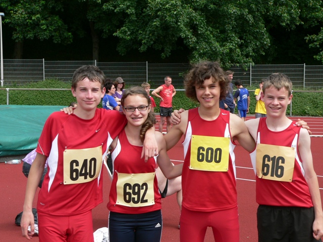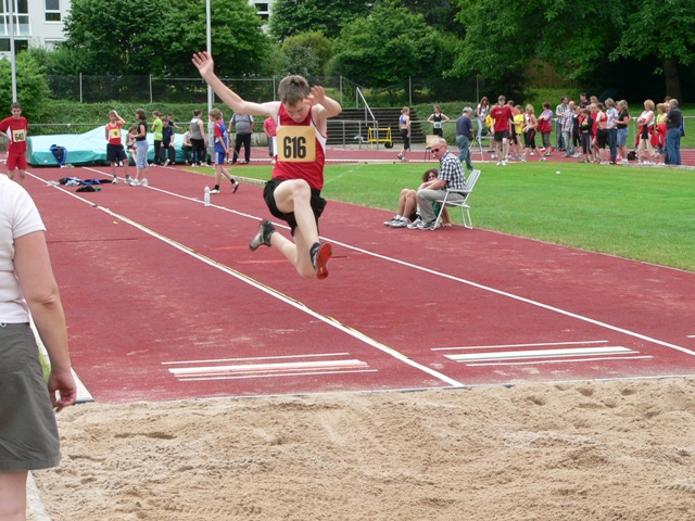 Regio MehrkampfLG Altenbürg beim Mehrkampf im schwäbischen Flein Den Mut zur Vielseitigkeit haben Sarah Gedemer, Marius Riffel, Noah Hodolic und Lucas Baumgärtneram Samstag den 12.06.2010 bei den Regio-Mehrkampfmeisterschaften im schwäbischen Flein bewiesen. Nachdem Sarah Gedemer bei ihrem Lauf über 100m in 13,09 nur knapp ihre persönliche Bestzeitverfehlte, verbesserte sie im direkten Anschluß beim Weitsprung ihre Bestmarke um 8cm auf 4,86m. Nach diesem tollen Start galt es nun auch beim Kugelstoßen und beim Weitsprung zu kämpfen was letztlich sehr gut gelang. Hoch motiviert starteten auch Noah Hodolic 13,30s, Marius Riffel 13,78s und Lucas Baumgärtner 14,39s beim 100m Sprint in den Wettkampf. Leider hat sich bei Lucas der Verdacht auf eine Zerrung beim Sprint bestätigt so dass er bereits nach dieser ersten Disziplin vorsichtshalber den Wettkampf abbrechen musste. Einen tadellosen Wettkampf bestritt hingegen Marius Riffel: Mit 4,32m im Weitsprung, 6,72m im Kugestoßen und übersprungenen 1,36m belegte er im Gesamtfeld den 8.Platz und wurde damit 1. Kreismeister im 4-Kampf. Ein sehr guter Wettkampfverlauf zeichnete sich nach 4,37m im Weitsprung und 6,91m im Kugestoßen auch bei Noah Hodolic ab. Lediglich etwas Pech und ein "Salto Nullo" im Hochsprung verhinderte eine Top-Platzierung und führte zu Platz 15 im Gesamtfeld aber dennoch wurde Noah 2. Kreismeister im 4-Kampf. Herzlichen Glückwunsch an die Mehrkämpfer zu den guten Leistungen!