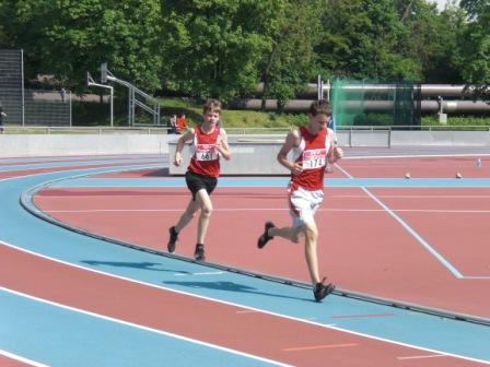 Marius Riffel und Noah Hodolic beim 1000m-Lauf der M14.