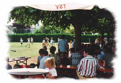 Waren der Samstag Nachmittag und der Montag Abend von den Spielen der einzelnen Ortsvereinsmannschaften im Faustball geprägt, so stand der Sonntag Nachmittag ganz im Zeichen der Vereinsjugend und deren Trainerinnen und Trainer. Schon eine halbe Stunde vor Beginn der Vorführungen hatten sich die schattigsten Plätze unter den Linden gefüllt.