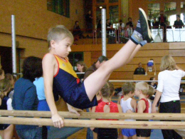 In der Klasse der 7-8-jährigen Schüler zeigte Calvin Klein an den Geräten Boden, Reck, Sprung und Barren Übungen der Schwierigkeitsklasse P4 und belegte am Ende den 6. Platz.