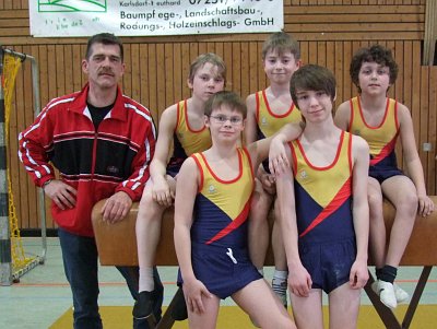 In der am stärksten besetzten Altersklasse C (bis 13 J.) absolvierte der Turnernachwuchs des TSV einen 4-Kampf mit Pflichtübungen der Schwierigkeitsstufen P2-P7. Vor zahlreichen Zuschauern und unter den kritischen Augen der Kampfrichter zeigten die Jungs ihr Können am Boden, Sprung, Barren und Reck. Mit insgesamt erturnten 156,6 Punkten im Mannschaftsergebnis fehlte den Schützlingen von Trainer Joachim Hörner am Ende nur die Winzigkeit von 0,1 P. zu einem Platz auf dem Treppchen.